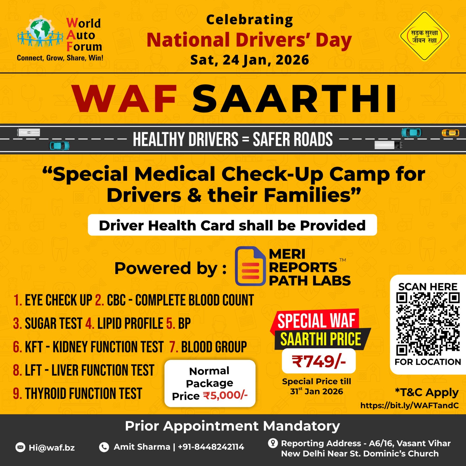#NationalDriversDay #DriverHealth #RoadSafety #WAFSaarthi #HealthyDriversSaferRoads #PublicSafety #MobilityLeadership #NationBuilding